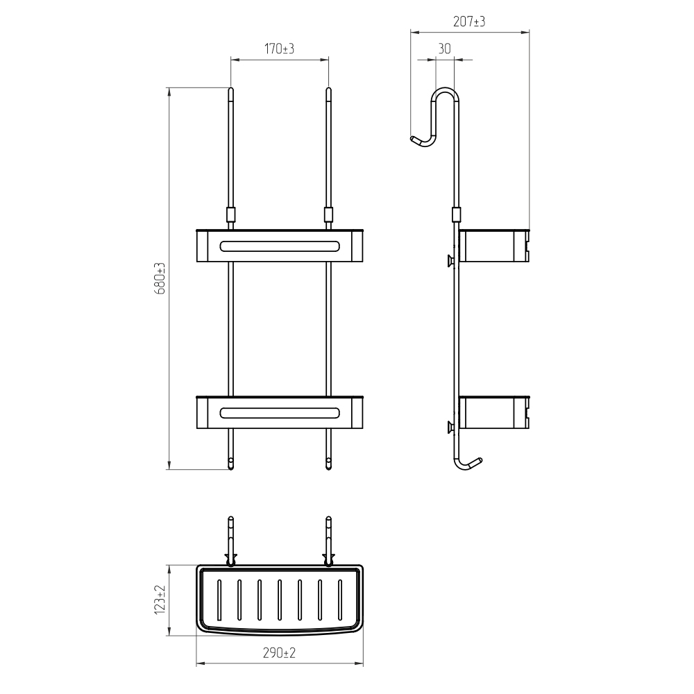 Полка AVS Kori, 30 см, хром, двухъярусная