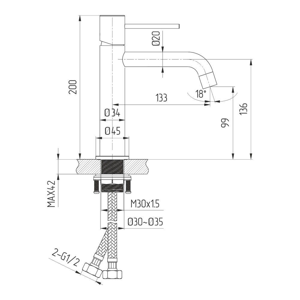 смеситель; комплект креплений; комплект гибкой подводки; инструкция.